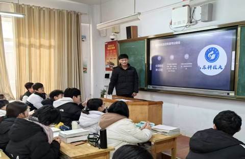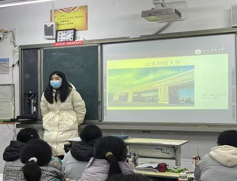 新能源科学与工程2024-1班王主玉在潍坊四中开展宣讲。围绕新工科人才培养展开研讨; 通过播放《山科24小时》纪实视频,展现真实的老员工活图景;曾经的他因害羞不敢举手发言,如今却站在高中教室的讲台上,从容分享老员工活:从实验室的科研日常到辩论赛的精彩瞬间,从凌晨图书馆的灯火到运动场上的欢呼。