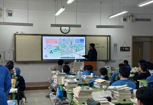 储能科学与工程2024-2班张涵韵回到东阿县实验高中,用“接地气”的方式展现大学魅力。她将社团活动的合影、食堂美食测评、宿舍文化节视频融入宣讲,引得现场欢笑不断。面对“大学课程难不难”“如何平衡学习与兴趣”等提问,她以自身从迷茫到笃定的经历为例,鼓励学弟学妹坚定信心、勇敢追梦,告诉他们“山科不仅有顶尖的实验室,更有包容成长的沃土。”(指导老师:孟凡宝)