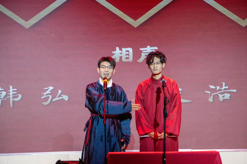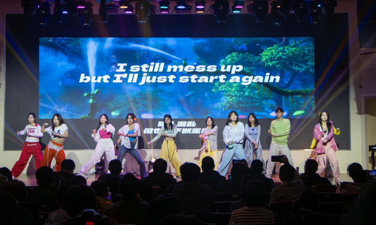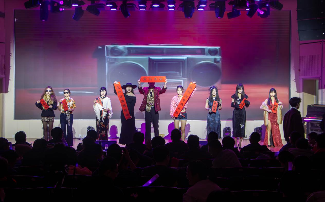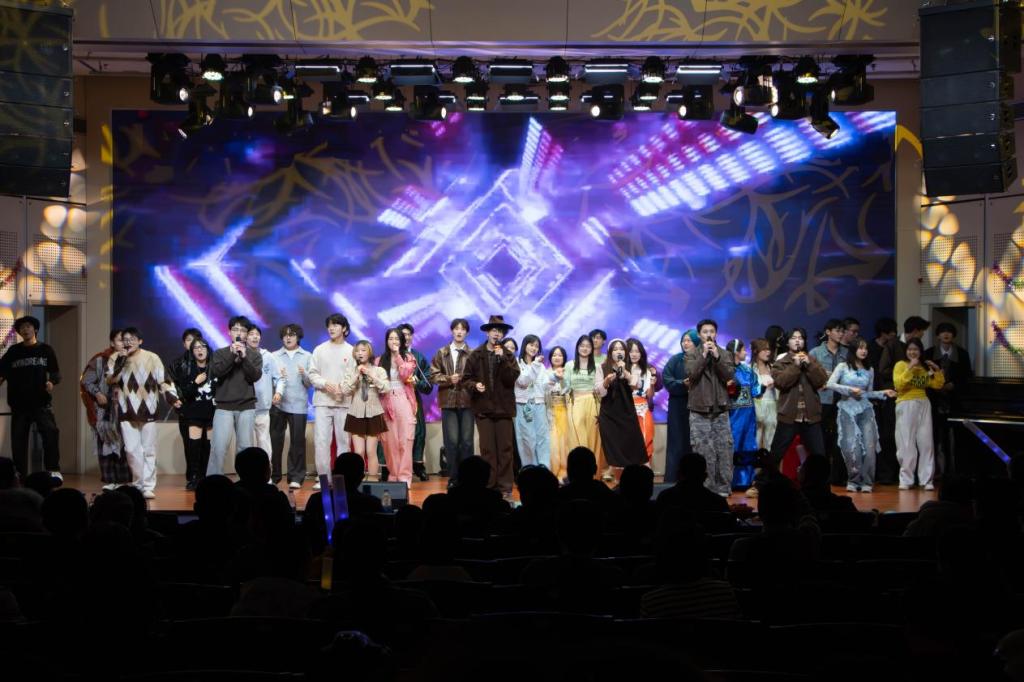 晚会期间还穿插了互动游戏和抽奖环节,欢呼声、掌声此起彼伏,现场洋溢着欢乐祥和的节日气氛。最后晚会在全体演职人员合唱的《日不落》中圆满落幕,温馨的旋律萦绕礼堂,师生们挥舞着荧光棒,共同定格这一美好瞬间。