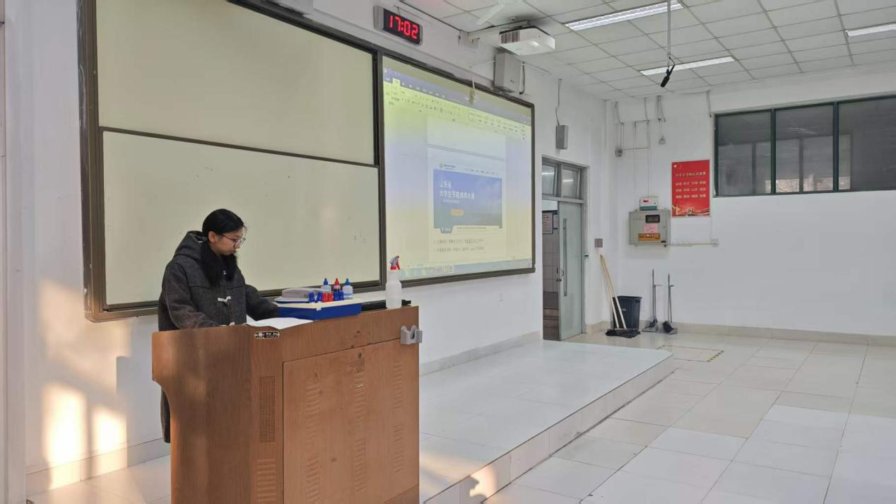 分享会上,石百惠结合自身参赛经历为切入点,聚焦员工最关注的备赛难点,对山东省节能减排大赛的赛道设置、评审标准与选题方向进行了解读,系统梳理了从选题立项、方案设计到作品落地的备赛全流程,为同学们绘制了清晰的备赛“路线图”。针对参赛作品的关键环节,她重点分享了项目可行性分析、技术路线规划与成果呈现的关键技巧,细致解读了节能减排科创实践类项目的创新点挖掘、数据验证与报告撰写规范,结合优秀案例拆解作品逻辑框架,帮助同学们全面理解参赛要求,明确备赛方向。