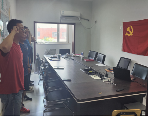 最后,全体党员开展了“重温入党誓词”活动。在鲜红的党旗下,各位党员高举右手庄严宣誓。誓言声声、铿锵有力,表达了党员同志们为共产主义事业奋斗终身、永葆党员先进性的坚定信念。