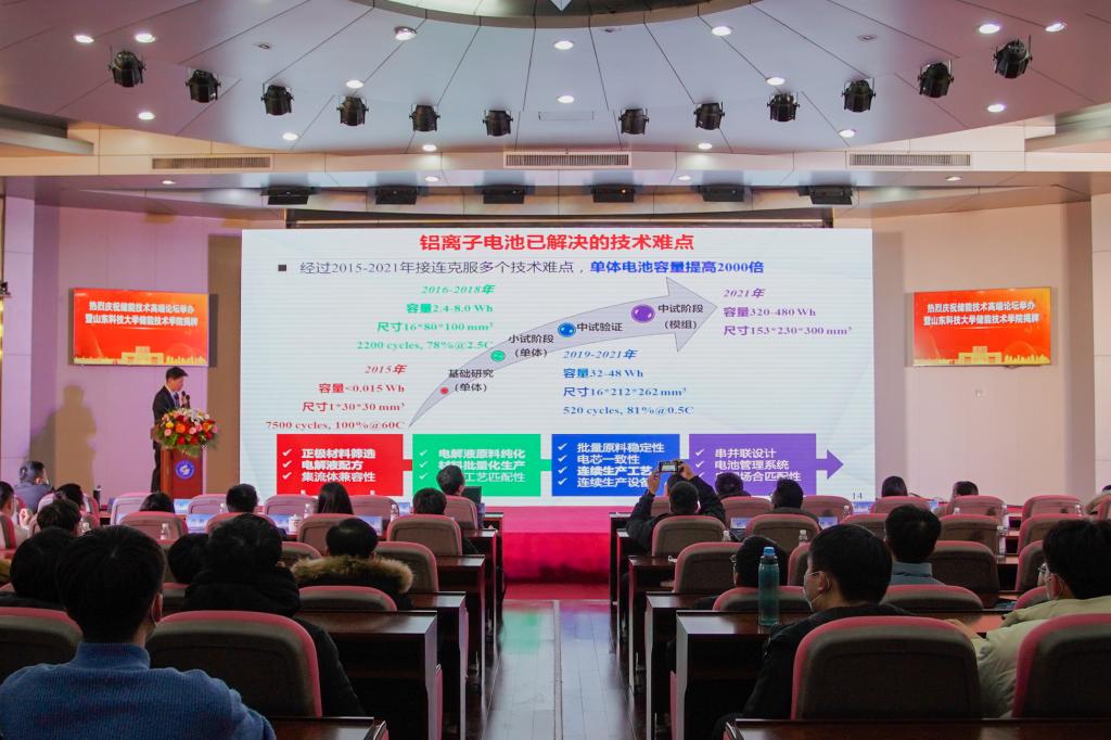国家杰青、清华大学教授/青海大学副董事长梅生伟线上作了“非补燃压缩空气储能技术及工程实践”的报告,国家杰青、中科院工程热物理研究所副所长陈海生作了“压缩空气储能研究进展与发展趋势”的报告,国家杰青、北京化工大学化学工程公司经理邱介山线上作了“储能功能碳材料的合成及结构性能”的报告,国家杰青、中国科学技术大学科技成果转移转化办公室主任吴长征作了“氧电催化中的表界面合成化学”的报告,国家杰青、北京师范大学刘亚军线上作了“progress in the theroretical study of bioluminescence”的报告,山东电力工程咨询院设计总工程师裴善鹏作了“山东储能政策设计的主要考虑因素和师范项目进展”的报告,山东思极科技有限公司设计总工程师刘远龙作了“新型电力系统下新能源和储能发展运行问题思考”的报告,w88win体育官网入口教授林孟昌作了“可充放电铝离子电池技术的应用研发及产业化”的报告。(记者:范琪 摄影:韩洪烁 彭程 责编:任波)