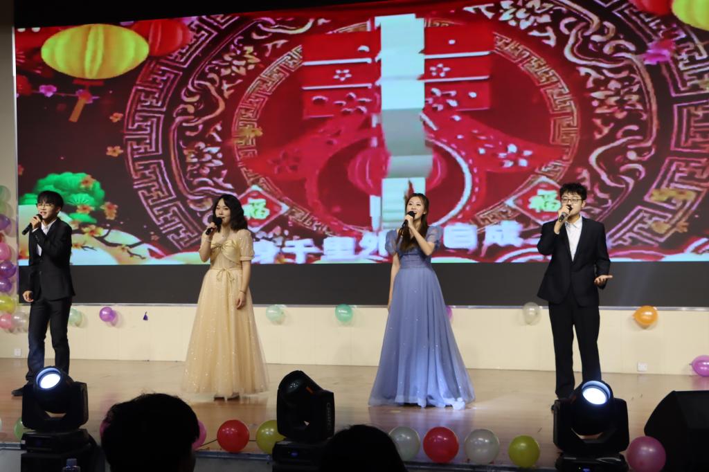 晚会以“储能乘风语龙韵,新岁破浪启华章”为主题,节目精彩纷呈。一曲充满青春活力的舞蹈《WANNA BE》拉开晚会序幕。周玥等青年教师表演的舞蹈赢得了一片掌声和欢笑声。朗诵《百年交响》歌颂了中国共产党团结带领中国人民,以“为有牺牲多壮志,敢教日月换新天”的大无畏气概,书写了中华民族几千年历史上最恢宏的史诗。歌曲《天下有情人》《河流》《无名的人》、舞蹈《LEFT RIGHT》、器乐《不再犹豫》、小品《真假老师》轮番上演,再次将气氛推向高潮。舞蹈《中西合璧》带来超强的艺术冲击力,赢得阵阵掌声。最后晚会在歌曲《相亲相爱》的温馨气氛下落下帷幕。