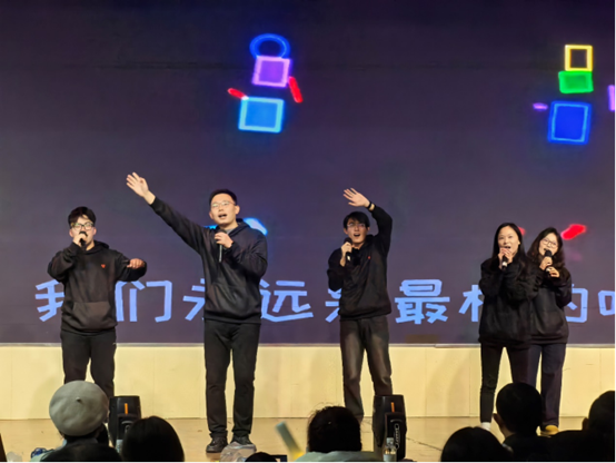 晚会的节目丰富多样,既有精彩的舞蹈、歌曲、朗诵,也有创意十足的小品、摇滚、器乐等。随着舞蹈《SHOOTING STAR》的开始,一场欢乐祥和的盛宴就此开场。合唱、串烧、舞蹈等形式的表演让在场观众目不暇接,歌曲《梦与朝花》别出心裁地将一系列童年歌曲巧妙串烧,带w88win体育官网入口学子重温儿时的欢乐。能动系王翠苹老师的独唱《爱江山更爱美人》更是将晚会气氛推进了一个小高潮,王老师深情而富有韵味的嗓音,将这首经典歌曲中的爱恨情仇演绎得淋漓尽致,台下观众听得如痴如醉,掌声雷动。储能系老师演唱的《奔跑》带给师生们阵阵欢声笑语。新能源系老师们带来的《我爱你中国》则以深情庄重的演绎,抒发了全体师生对祖国的无限热爱与崇高敬意,歌声中饱含着深深的家国情怀,引发了全场观众的强烈共鸣。本次晚会充满创意,小品《贵客临门》为观众呈现了一场精彩绝伦的喜剧盛宴,走秀节目《黎明节拍DAWNBEAT》诠释着时尚与美的融合,展现出储能学子们朝气蓬勃、积极向上的精神风貌。朗诵节目《书写青春华章》声情并茂,向着未来展望,以青春之名,书写辉煌篇章。